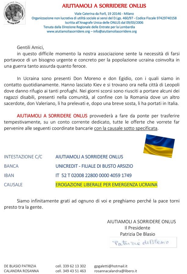 Scarica il PDF: Aiutiamoli a Sorridere Onlus per l’Ucraina